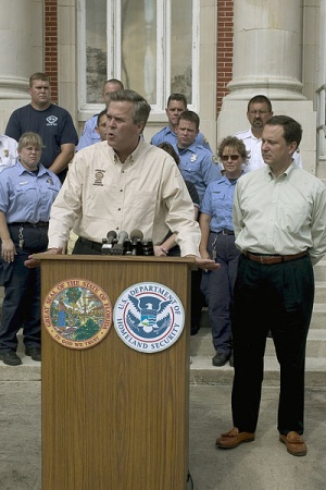 JEB BUSH Jeb Bush se dirige en una comparecencia pública a los ciudadanos del condado de DeSoto, tras el paso del huracán _Charley_. Arcadia, Florida, 7 de octubre de 2004. ------------------------- ...